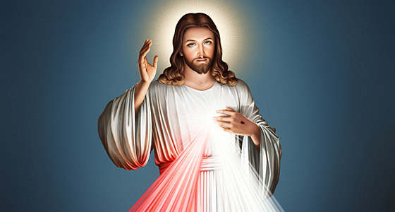 In the evening, when I was in my cell, I saw the Lord Jesus clothed in a white garment. One hand [was] raised in the gesture of blessing, the other was touching the garment at the breast. From beneath the garment, slightly drawn aside at the breast, there were emanating two large rays, one red, the other pale. In silence I kept my gaze fixed on the Lord; my soul was struck with awe, but also with great joy.